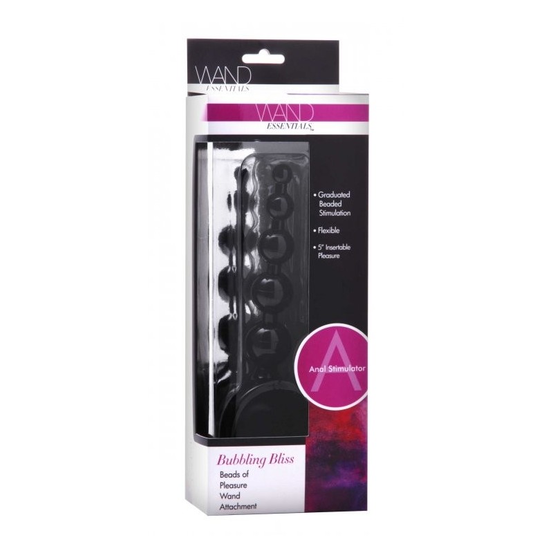 Bubbling Bliss is a highly stimulating beaded attachment for your favorite wand. Featuring five orgasmic pleasure beads, each one larger than the last. Delight in powerful vibration that is transmitted through each bead. This five inch insertable stimulator is made of flexible TPR material, so that it bends with your body. Enjoy sizzling intensity and blissful backdoor pleasure tonight!
